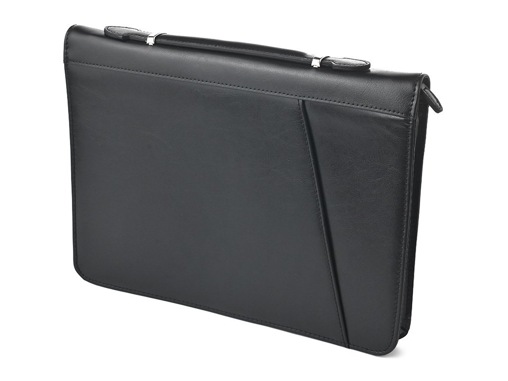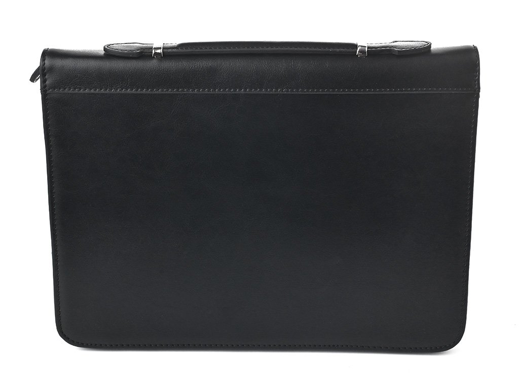 Kožená diplomatka v černé barvě s otevírací kroužkovou vazbou. Hlavní kapsa je na zip. Zde jsou k dispozici přihrádky na karty či vizitky, přihrádka na propisku a na malý telefon. Dále jsou k dispozici ještě další kapsy na dokumenty. Diplomatka bez problému pojme dokumenty o velikosti A4.