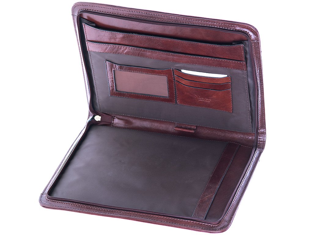 Kvalitně zpracovaná diplomatka v hnědé barvě. Celkové se uzavírá zipem. Uvnitř další tři přihrádky na papíry nebo také na propisku, karty či vizitky. Bez problému lze do diplomatky vložit dokumenty velikosti A4. Na vnější straně je jedna volně přístupná přihrádka.