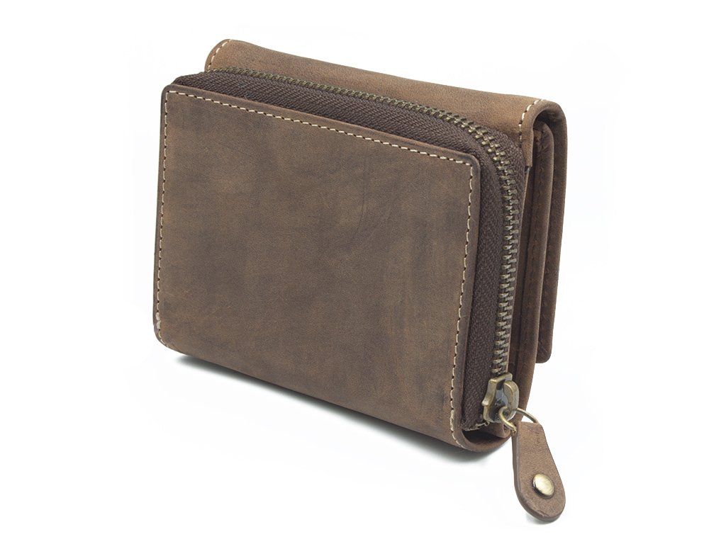 Kvalitní dámská kožená peněženka klasického designu. I přes menší rozměry splňuje základní požadavky z hlediska počtu přihrádek na karty a doklady menšího formátu, zejména se hodí do menších kabelek. Přihrádka na mince se zapíná na zip. Velmi precizní zpracování z prvotřídní broušené kůže ocení každý.