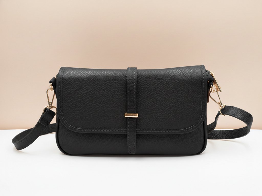 Dámská kožená kabelka černá - menší crossbody ITA3759