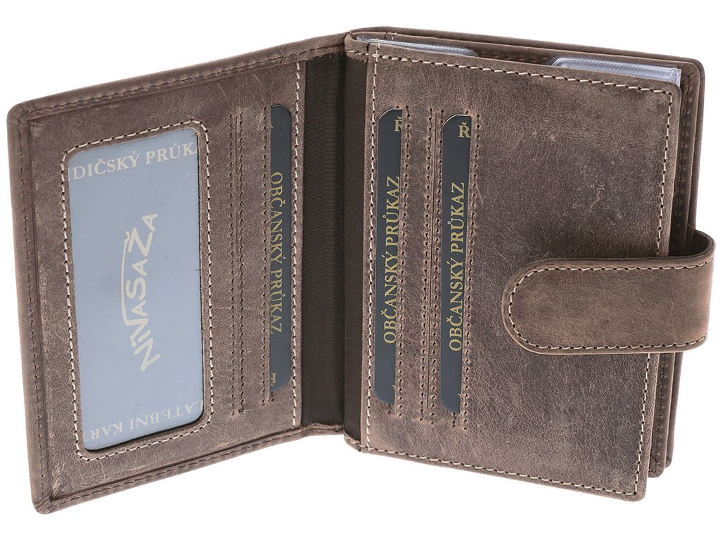 Kožené pouzdro na doklady hnědé - prostorné se zapínáním Nivasaža N124