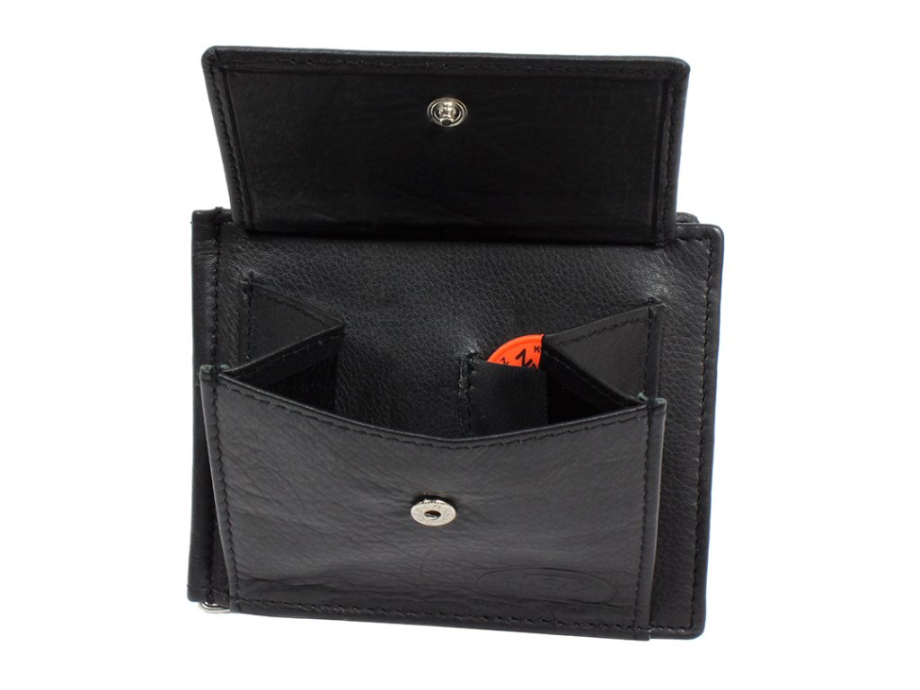Kožená dolarovka klasického designu v černé barvě. Je vyrobena z kvalitní měkké kůže, která je příjemná do ruky. Vzhledem k velikosti je relativně prostorná. Nemá přihrádky na větší doklady např. malý TP apod. Kapsička na mince je na druk, uvnitř je kapsička na žeton do nákupního vozíku.