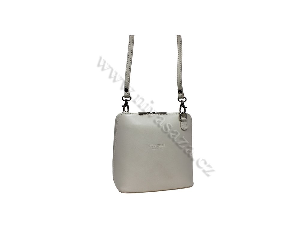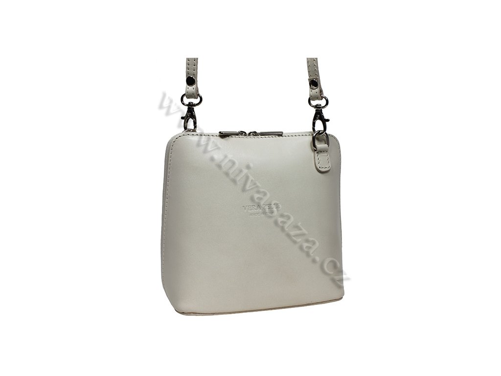 Kvalitní dámská kožená kabelka moderního provedení a krémové barvy. Kvalitní zpracování zaručuje elegantní vzhled a dlouhou životnost. Kabelka je menších rozměrů, vhodná pro volnočasové aktivity. K dispozici je také popruh přes rameno, který není nastavitelný. Hlavní kapsa se zapíná na zip a je rozdělena na dvě části přepážkou, která funguje také jako malá kapsa na zip. Vnitřní přihrádky na drobnosti zde nejsou. Kabelka má pevné dno. Na zadní straně je další kapsa na zip.