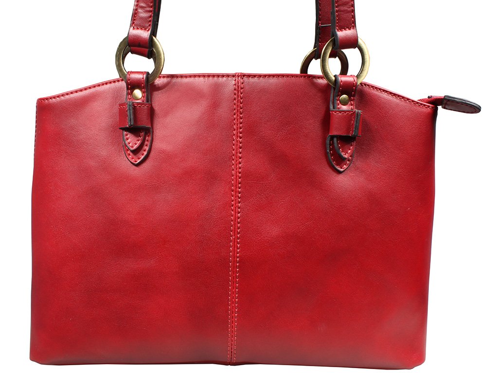Kvalitní kožená kabelka klasického designu v červené barvě. Rozměrově se jedná o kabelku střední velikosti s dostatečným úložným prostorem. Hlavní úložný prostor se skládá ze dvou kapes. V první kapse je menší kapsa na zip. Ve druhé kapse jsou k dispozici přihrádky na drobnosti (mobilní telefon, vizitky apod.). Na zadní straně kabelky je další kapsa na zip. Kabelka nemá nastavitelné ucho přes rameno.