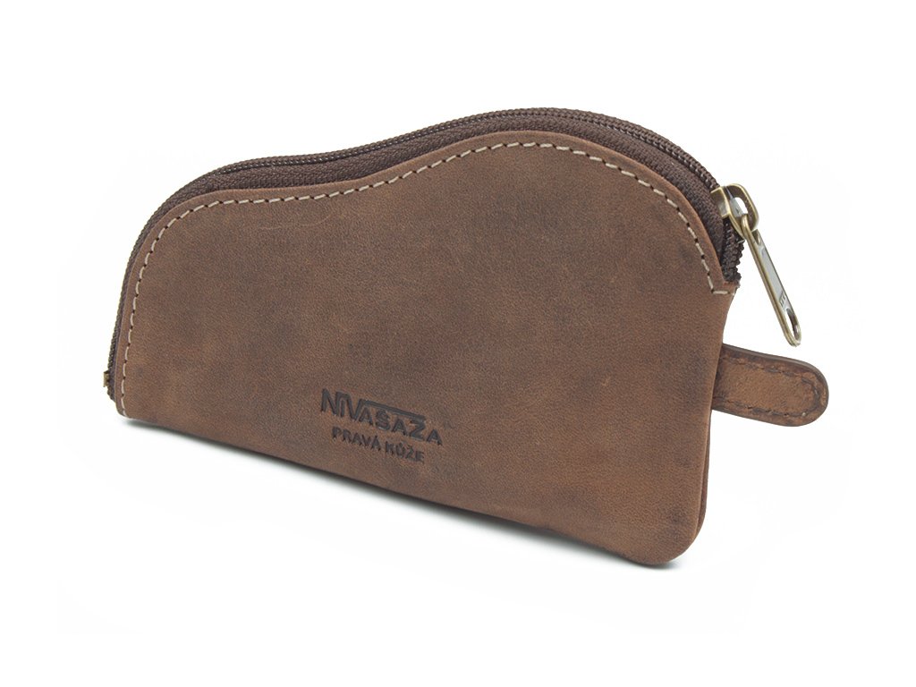 Kožená klíčenka hnědá - netradiční tvar Nivasaža N117