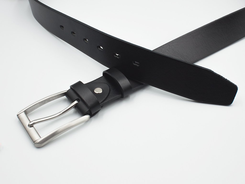 Kvalitní kožený opasek černé barvy v elegantním provedení. Jedná se o jeden kus kůže bez šití, není lepený ze dvou vrstev apod. Možnost zkracování.