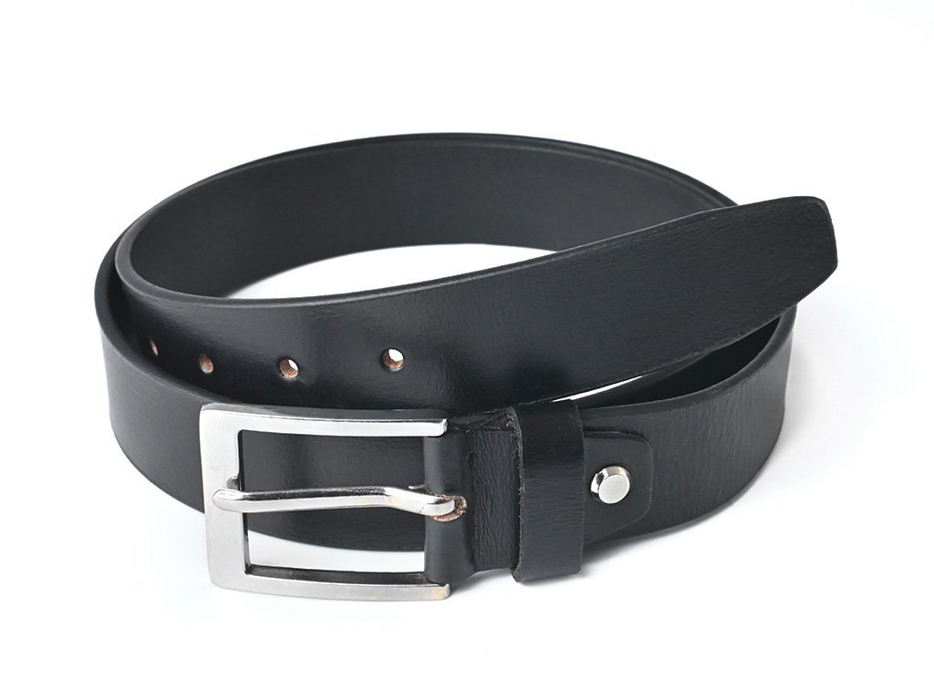 Kvalitní kožený opasek černé barvy v klasickém provedení. Jedná se o jeden kus kůže bez šití, není lepený ze dvou vrstev apod. Možnost zkracování.