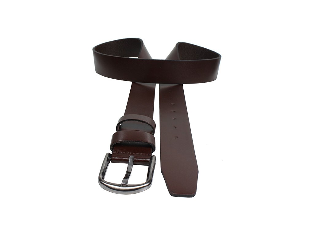 Kvalitní kožený poasek hnědé barvy, kůže je hladká a bez vzoru. Jedná se o jeden kus kůže bez šití, není nijak lepený ze dvou vrstev apod.Má dvě poutka, jedno je posuvné.