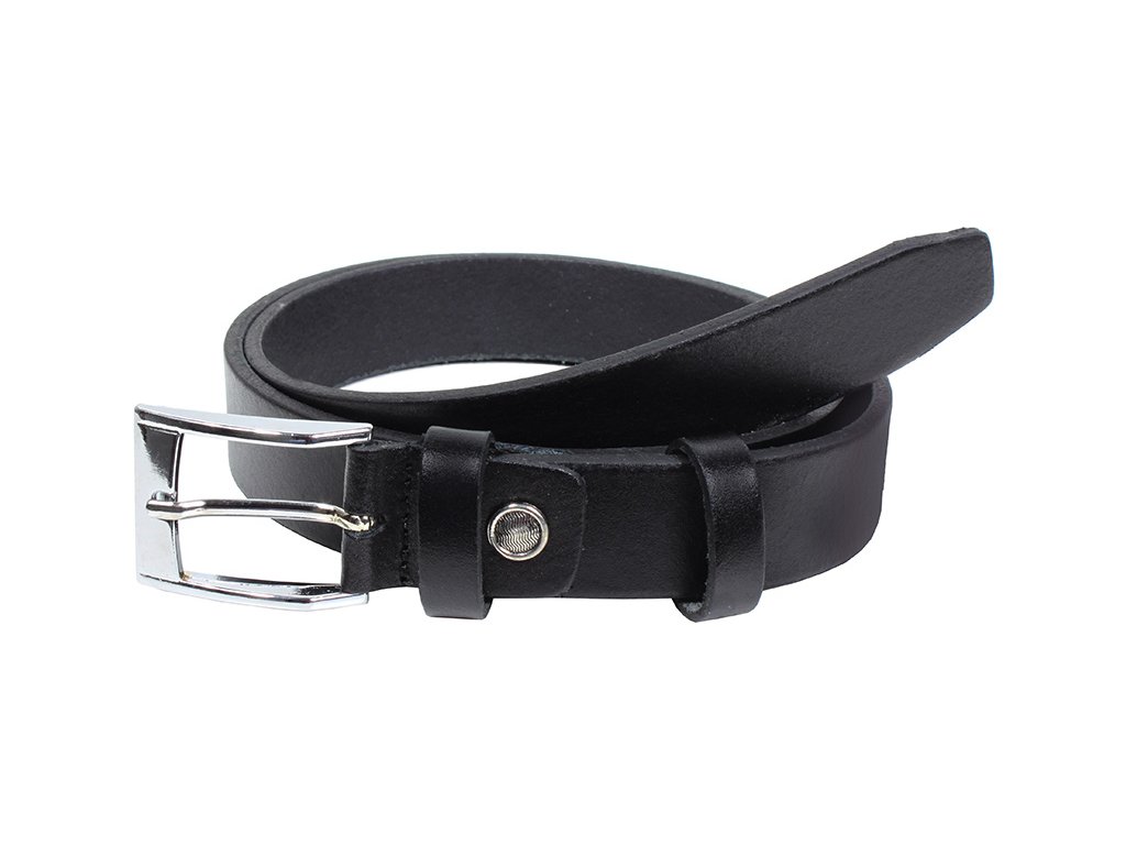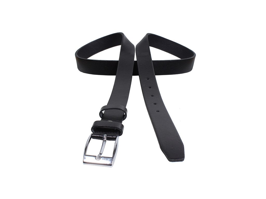 Kvalitní kožený opasek černé barvy, kůže je hladká a bez vzoru. Jedná se o jeden kus kůže bez šití, nejedná se o pásek lepený ze dvou vrstev apod. Pásek má dvě poutka, jedno je posuvné. Vhodný k obleku.