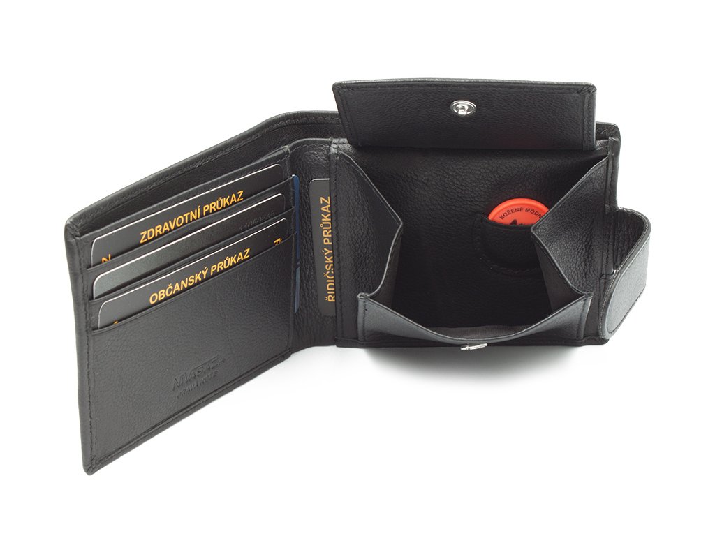 Elegantní malá pánská kožená peněženka klasického designu se zapínáním. Praktické rozměry zaručují, že se vejde téměř do každé kapsy a přitom pojme základní doklady velikosti platební karty. Hlavním rysem je tloušťka kolem 1,3 cm (když není naplněná). Přihrádka na mince se zapíná na druk, uvnitř přihrádky je malá kapsička na žeton do nákupního vozíku. Velmi precizní zpracování z prvotřídní měkké kůže ocení každý.