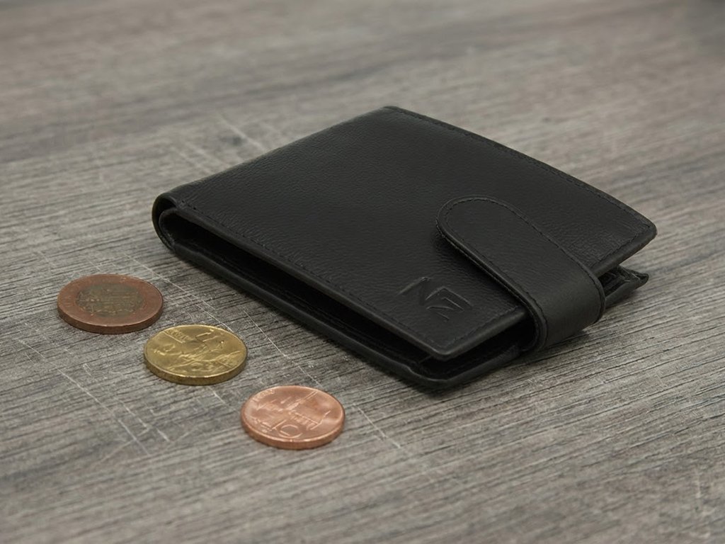 Černá kožená peněženka minimalistická na zapínání Nivasaža N19