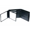 Kvalitní pánská kožená peněženka klasického designu černé barvy. Jedná se o větší peněženku, která ale poskytne dostatečný úložný prostor pro větší i menší doklady, které chcete mít stále u sebe. Přihrádka na mince se zapíná na druk, součástí přihrádky je malá kapsička na žeton do nákupního vozíku.
