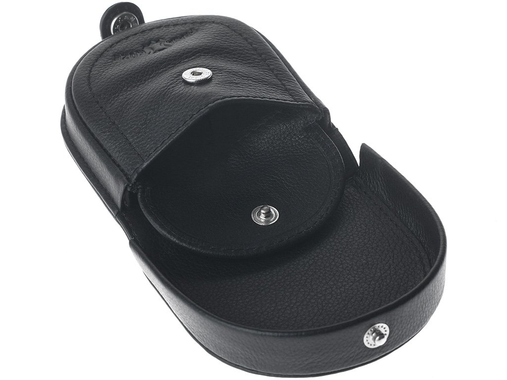 Kvalitní kožená peněženka na mince tzv. podkova je vyrobena z hovězí kůže. Jedná se o kvalitní kůži v elegantním černém provedení. Mincovka má ještě jednu malou kapsičku na drobnosti. Zapíná se na druk.