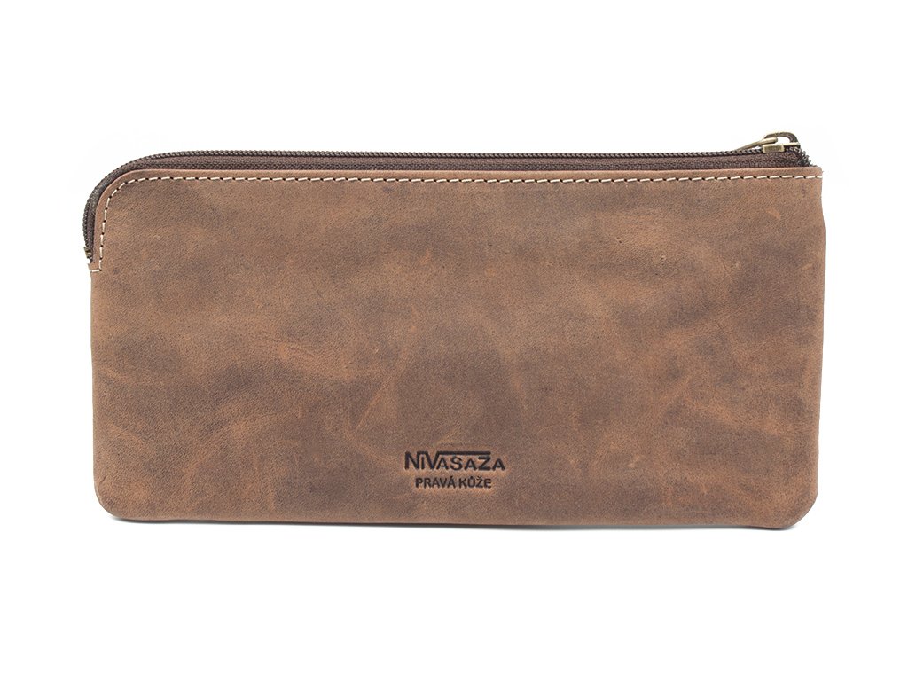 Kožené pouzdro na mobilní telefon hnědé - multifunkční Nivasaža N800