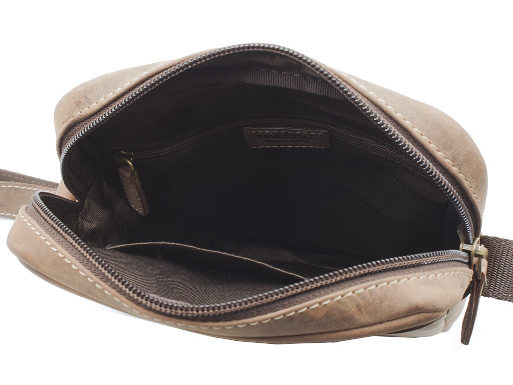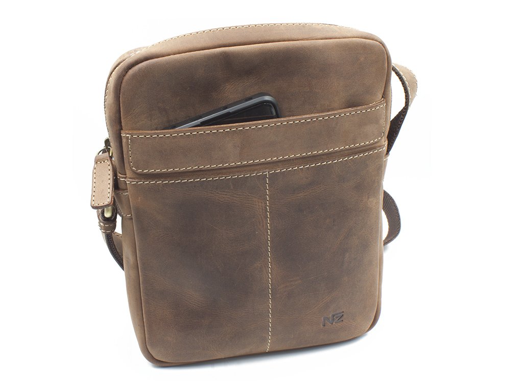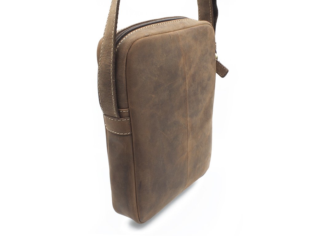 Kvalitně zpracovaná pánská kožená taška menších rozměrů. Má dlouhý nastavitelný popruh přes rameno. Hlavní kapsa se zapíná na zip, uvnitř je další menší kapsa na zip a přihrádka na telefon. Na přední straně je další kapsa bez uzavírání. Velmi precizní zpracování z prvotřídní broušené kůže ocení každý.